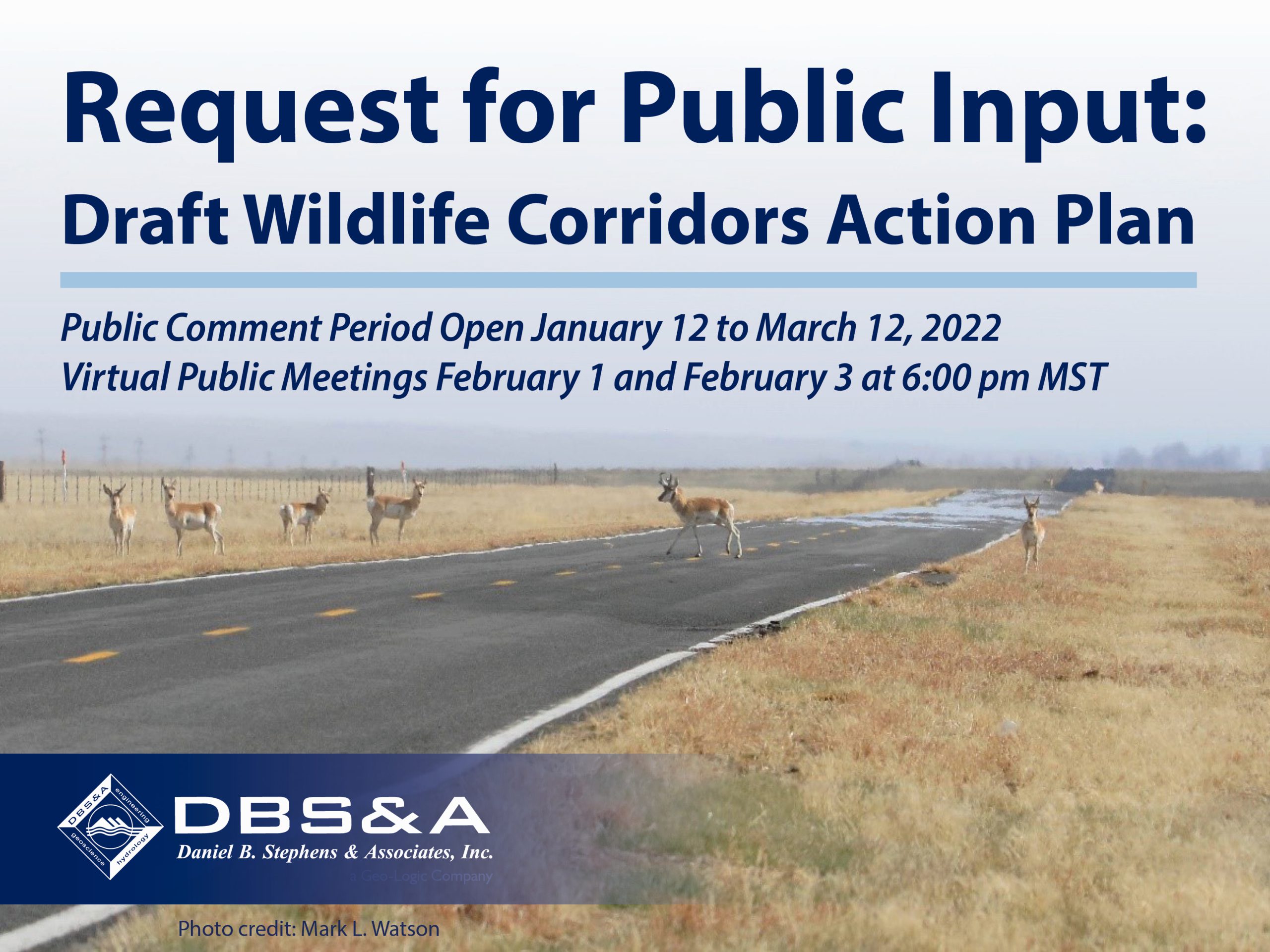 A team of national experts led by Daniel B. Stephens and Associates (DBS&A), under contract with NMDOT and in partnership with NMDGF, developed the Plan. The DBS&A team used a science-driven approach to identify areas per the Act that “pose a risk to successful wildlife migration or that pose a risk to the traveling public” and is based on NMDOT crash data and ecological information on wildlife movements.